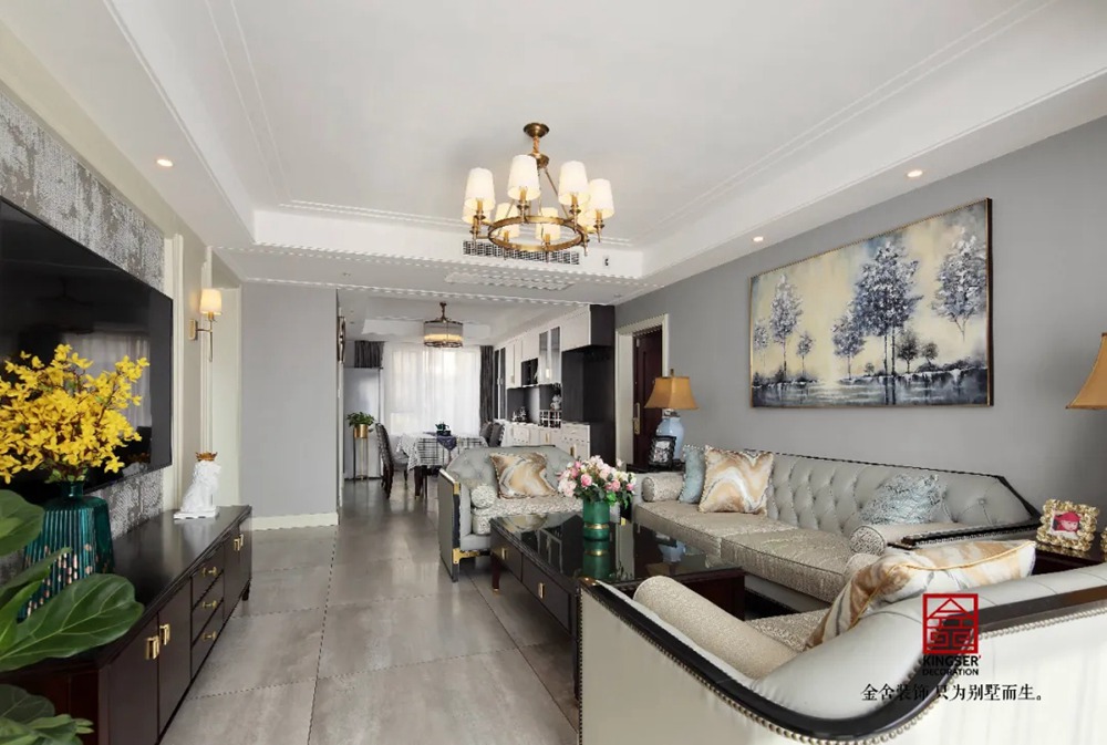 整體空間強調簡潔、明晰的線條和優雅、得體有度的裝飾??蛷d的效果代表了一種自在、隨意不羈的生活方式,這些元素也正好體現了一種對生活方式的需求。