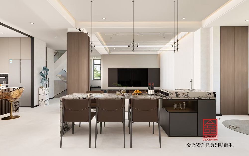 設(shè)計說明:該客廳以 “極簡美學(xué)與輕奢質(zhì)感的共生” 為設(shè)計理念,從空間布局、材質(zhì)運用到細節(jié)塑造,展現(xiàn)出別墅生活的雅致與舒適。